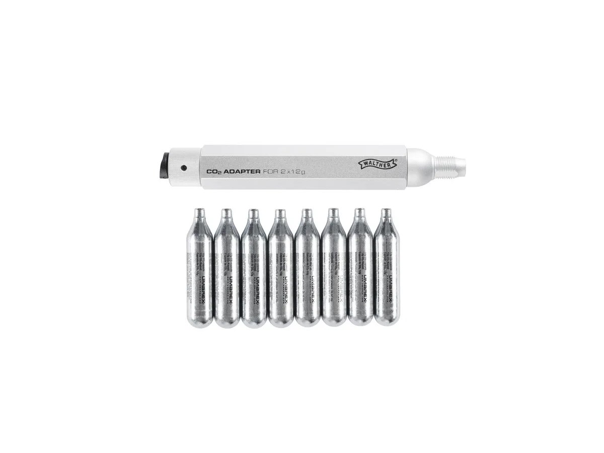 Adaptér sa môže použiť namiesto 88-gramovej bombičky v zbraniach Walther Lever Action a Beretta Cx4 Storm. Balenie obsahuje 8 kusov 12-gramových bombičiek Umarex.