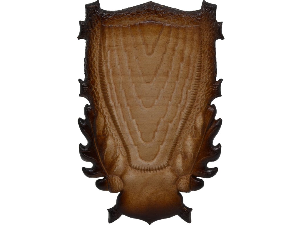 Každá trofej si zaslúži podklad, ktorý podčiarkne jej hodnotu. Táto podložka je vyrobená z vrstveného a lisovaného dreva, čo jej dodáva vysokú hustotu a pevnosť. Povrch je upravený tradičnými metódami tieňovania, aby dokonale ladil s atmosférou poľovníckej izby. Stavte na materiál, ktorý pracuje s vami – stlačená preglejka zaručuje, že podložka zostane tvarovo stála bez ohľadu na podmienky v interiéri.