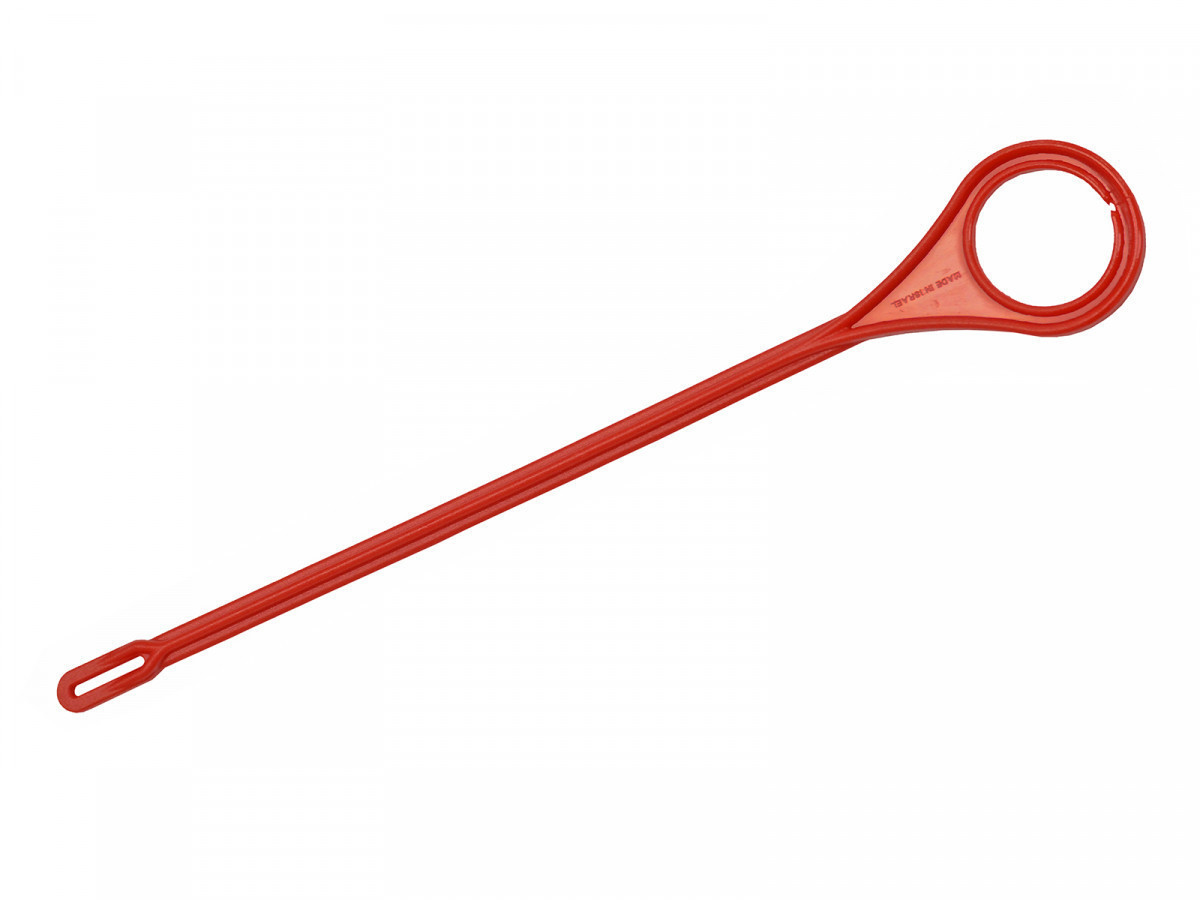 Červený plastový vyterák hlavne Fobus s očkom pre čistiacu handričku.