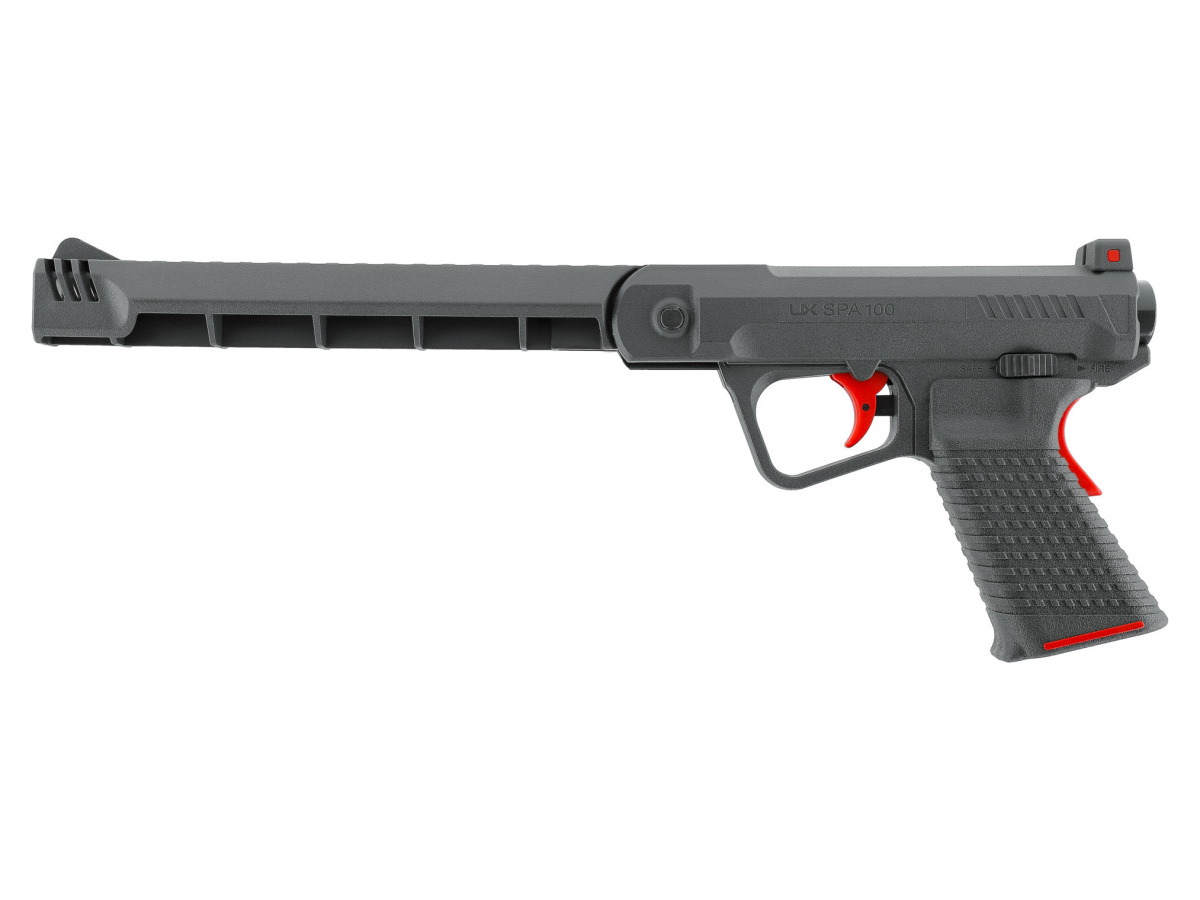 Umarex UX SPA 100 je vztupným nízkonákladovým modelom do fascinujúceho sveta rekreačnej streľby. Moderná konštrukcia je kombináciou kovu a odolného polyméru. Funkčné prvky tejto vzduchovej pištole svojim intuitívnym umiestnením a farebným zvýraznením zaisťujú maximálnu bezpečnosť obsluhy. Osvedčený pružinový systém a drážkovaná hlaveň, zaisťuje presnosť. Dvojité istenie manuálnou poistkou a dlaňovou poistkou integrovanou do chrbta rukoväte.