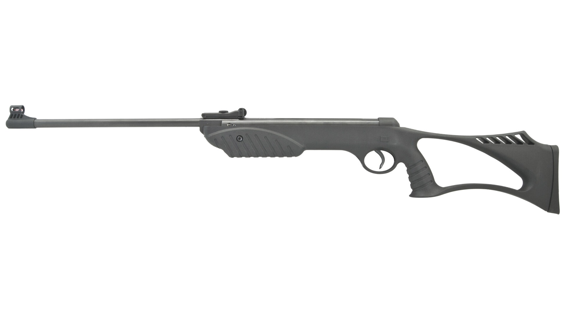 Celý systém vzduchovky Borner XSB je zasadený do polymérovej pažby s kompaktnými rozmermi a futuristickým otvoreným vzhľadom. Ergonómia pažby vyhovie pravákom aj ľavákom.